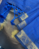 Blue Cotton tussar silk saree combines the vibrant color of blue with the unique texture of Tussar silk and the breathability of cotton.