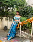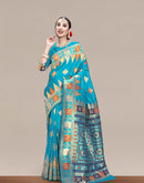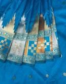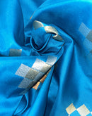 This bright blue heavy silk saree is a classy traditional drape that exudes elegance and cultural richness. Banarasi sarees are known for their intricate craftsmanship and luxurious silk fabric.