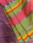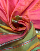 Peach cotton silk saree with a classy border combines the elegance of silk with the practicality of cotton, making it a versatile and stylish choice for a range of occasions like day events, casual gatherings, and semi-formal occasions where you want to blend elegance with comfort.