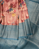 Silk printed saree with blue border is perfect for adding a touch of sophistication and style to your wardrobe, suitable for various festivals and celebrations, where their rich texture and vibrant prints can make a strong style statement.