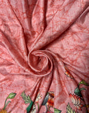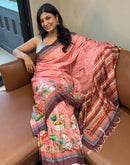 Light-as-air this cotton silk saree with a soft pink pastel shade, lends a delicate canvas for the floral prints to bloom .