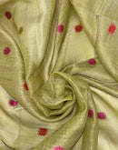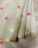 This Green zari linen saree combines the elegance of linen fabric with intricate zari work.