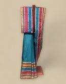 Teal cotton silk saree with a classy border combines the elegance of silk with the practicality of cotton, making it a versatile and stylish choice for a range of occasions like day events, casual gatherings, and semi-formal occasions where you want to blend elegance with comfort.