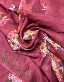 Red organza printed saree with swarovski work,​ perfect for luxurious appearance and airy feel.​ ​Ideal for festive occasions or other formal gatherings where you want to make a statement and... See More