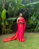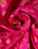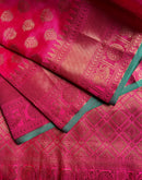 Bright pink silk saree with a green outline is a vibrant and eye-catching choice as it blends the bold pink colour with a refreshing touch of green.