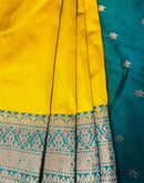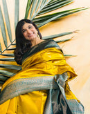 Yellow-mustard Kanjivaram silk saree is a magnificent blend of traditional craftsmanship and regal elegance.
