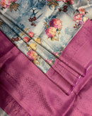 Silk printed saree with pink border is perfect for adding a touch of sophistication and style to your wardrobe, suitable for various festivals and celebrations, where their rich texture and vibrant prints can make a strong style statement.