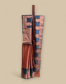 Burnt orange silk saree with a black border and boti design is a striking and elegant combination.​ Earthy tone exudes sophistication, perfect for formal events, weddings, and festive occasions. See More
