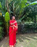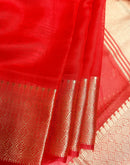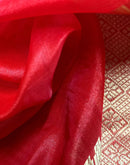 Red organza silk saree is a beautiful and elegant choice that combines the delicate transparency of organza with the richness and vibrancy of red color.