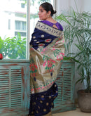 This blue silk saree is a timeless and elegant choice that combines the richness of silk with the allure of a stunning pallu design. ​