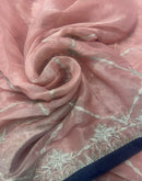 Exquisite pink crush organza saree is a perfect blend of elegance and charm, making it an ideal choice for festive season. Crafted from lightweight organza, the fabric drapes beautifully, creating a graceful silhouette