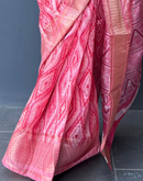 Pink chanderi silk saree with lahariya print is a stunning choice for those who appreciate the blend of tradition and contemporary fashion, making it a beautiful addition to any wardrobe.