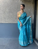 Blue chanderi silk saree with lahariya print is a stunning choice for those who appreciate the blend of tradition and contemporary fashion, making it a beautiful addition to any wardrobe.