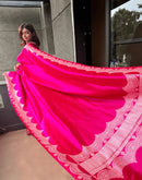 A Katan Silk Saree with Scalp (also spelled as 'scallop') refers to a traditional Indian saree made from soft Katan silk, featuring a scalloped border.​