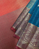 Blue Silk Saree fusion of elegance and vibrant color adorned with a striking contrast red border and matching blouse. This saree is designed to captivate with its rich silk fabric and bold color combination, making it a standout choice for any special occasion.