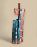 Blue Silk Saree fusion of elegance and vibrant color adorned with a striking contrast red border and matching blouse. This saree is designed to captivate with its rich silk fabric... See More