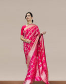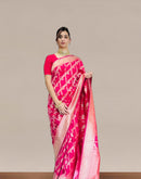 Deep pink Banarasi silk saree with zari work is a truly exquisite choice
