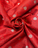 Red Sarton Tanchhui silk saree with a golden and green border would exude sophistication and elegance, blending the subtle charm of mustard yellow with the opulence of golden and green accents.